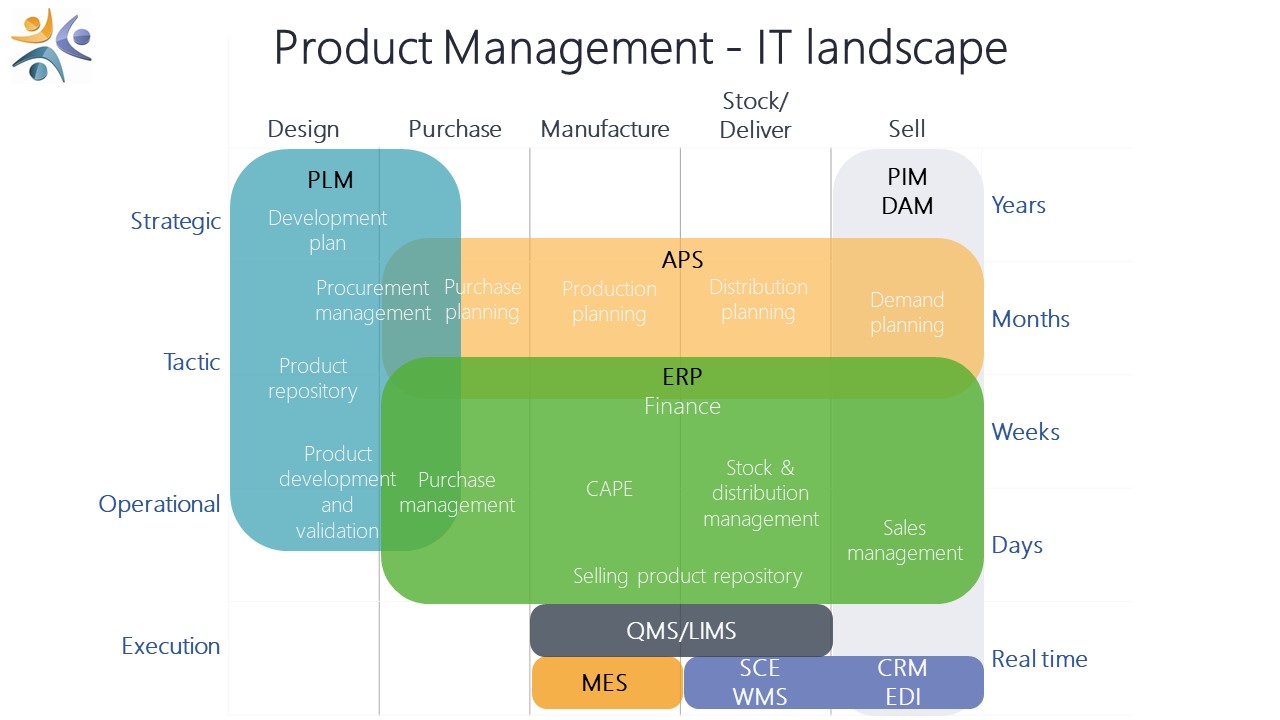 All Software described above can, and in fact, must be interfaced with each other. The PLM is the first solution operated in the operations. It allows all actors and factors to work together around a unique version of the truth as it is the base of all data used eventually. That is why the choice of the PLM solution is critical. What a better way to understand the importance of interfacing all these than a figure of an IT landscape in project management: